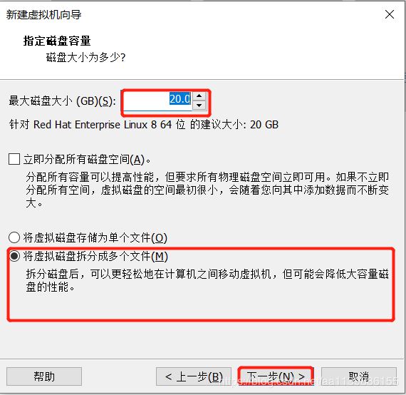 5.linux版本選擇,因為VMware15.5版本選擇里面沒有centios8.1,這里我們選擇Rded Hat Enterprise Linux 8 64位