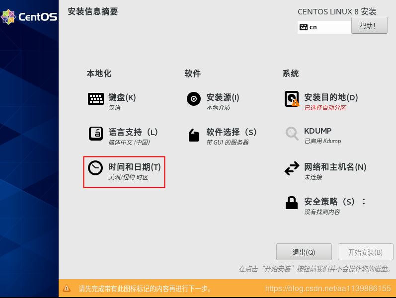 5.選擇install centos Linux 8,鍵盤上下箭頭控制選擇