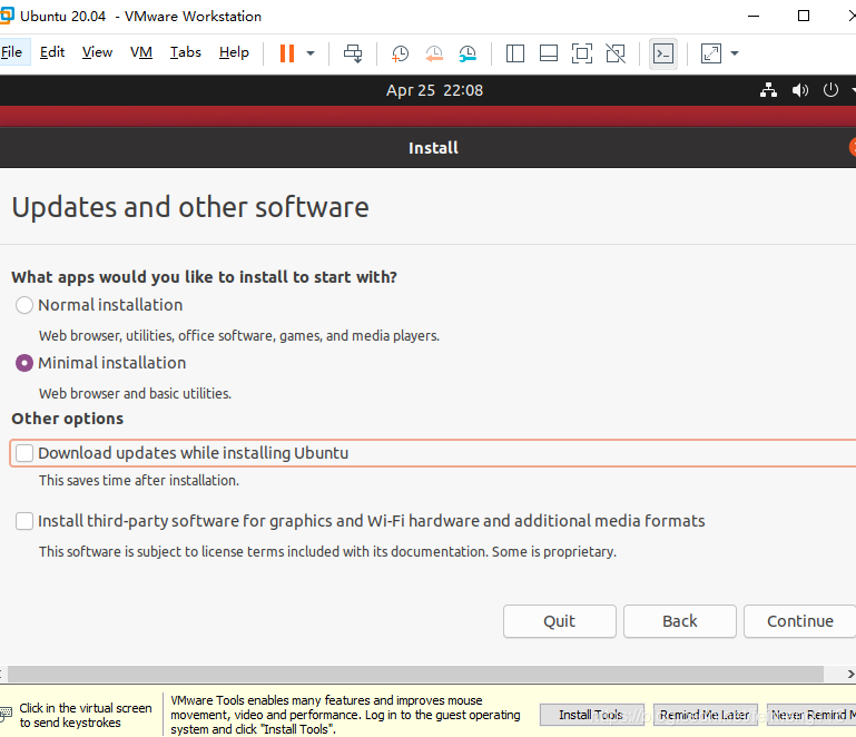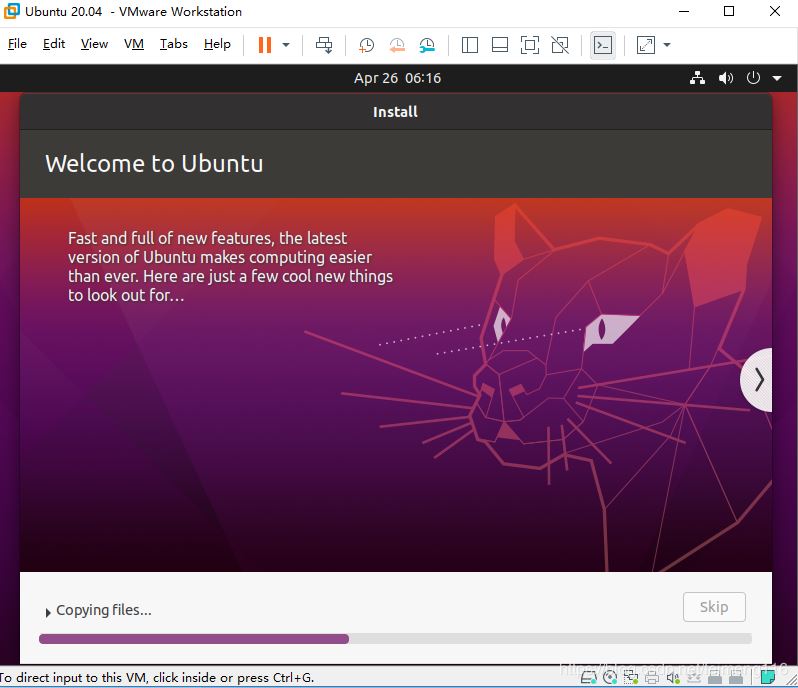 到此這篇關于使用虛擬機VMware安裝Ubuntu 20.04的全教程的文章就介紹到這了,更多相關VMware安裝Ubuntu 內(nèi)容請搜索腳本之家以前的文章或繼續(xù)瀏覽下面的相關文章希望大家以后多多支持腳本之家!