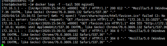 [root@docker01 ~]# docker logs -f --tail 500 nginx01
