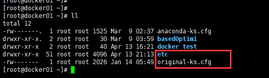 [root@docker01 ~]# docker cp 67ba647b0151:/root/original-ks.cfg /root/ # 拷貝文件