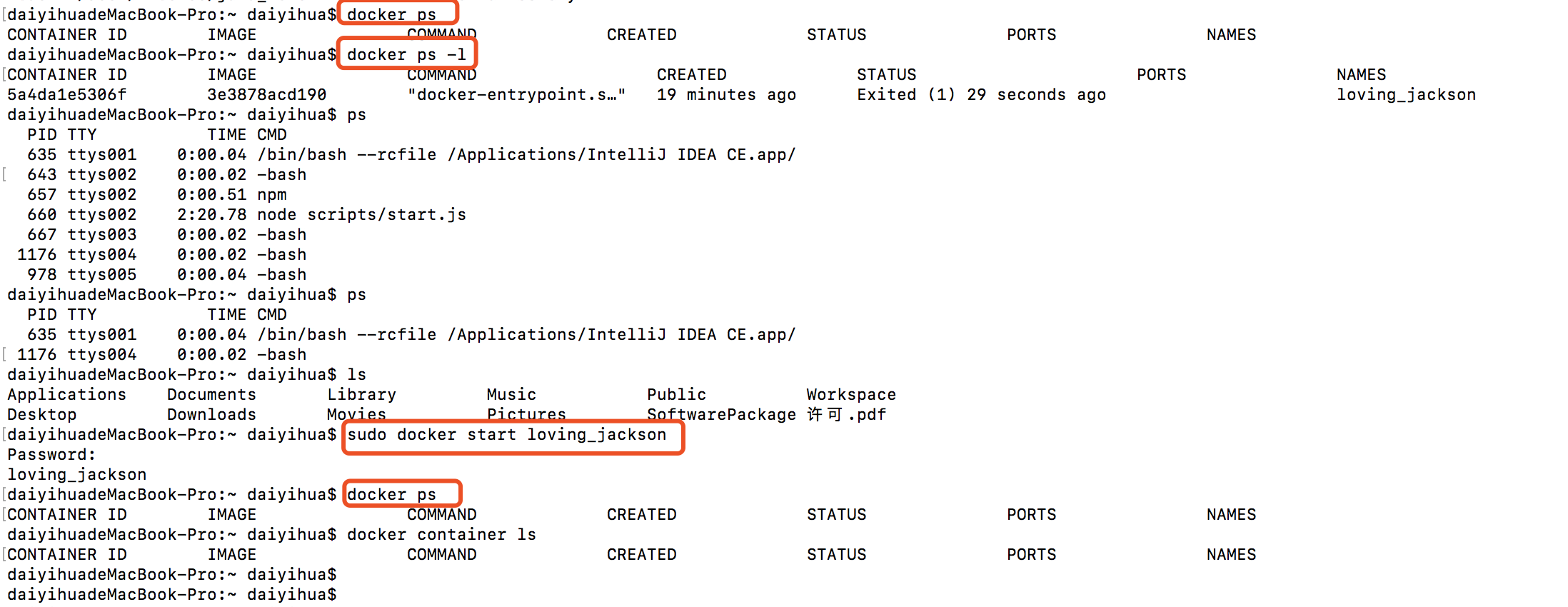 上面的步驟:如果sudo docker start name 能重新啟動(dòng),也就是輸入:docker ps 能看到自己所需要的服務(wù)已經(jīng)開(kāi)啟,那就不需要再進(jìn)行下面的步驟了,如果剛好像上面那樣,那就接著看下文: