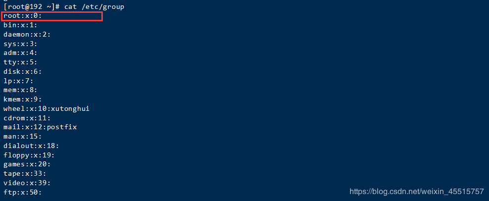 [root@192 ~]# cat /etc/group
