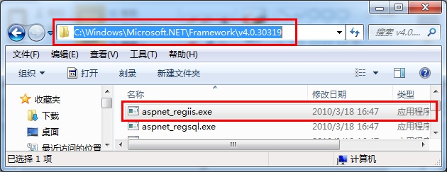 ①找到.NET 4.0框架下aspnet_regiis所在目錄,在C盤根目錄中搜索aspnet_regiis,找到4.0框架下aspnet_regiis的目錄位置,本人本本目錄為"C:\Windows\Microsoft.NET\Framework\v4.0.30319".