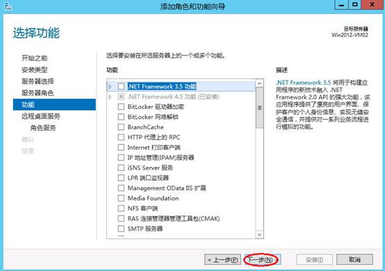 1.6. 選擇“桌面會話主機(jī)”和“遠(yuǎn)程桌面授權(quán) ”,在彈出的窗口中點擊“添加功能”,點擊下一步