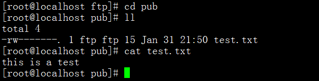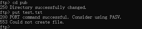 如果遇見以下情況,不要著急,可能是 pub 文件夾權(quán)限不夠,提高權(quán)限即可:chmod 777 /var/ftp/pub