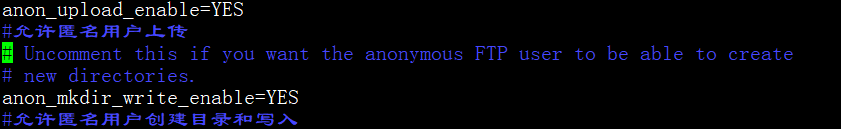 3.如果想進(jìn)行匿名操作,首先確保,vsftpd.conf 配置文件中的 anonymous_enable=YES,