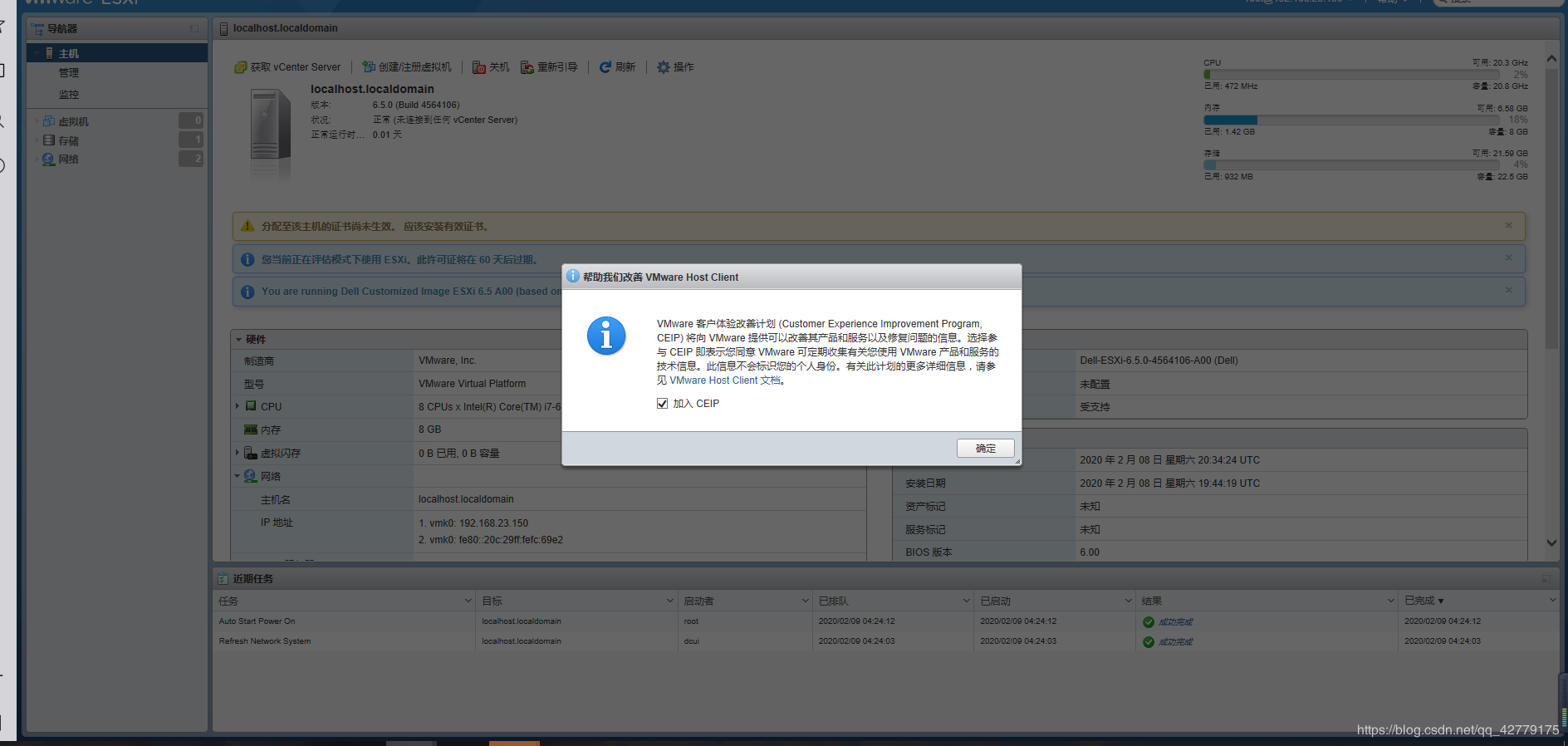 ESXI6.5 安裝完之后可以使用Web界面進行訪問