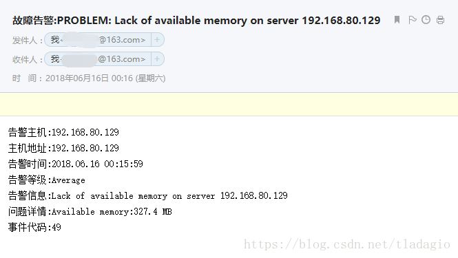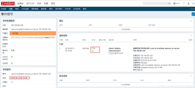 到這我們的郵件報(bào)警配置就完成了,這是只要我們?cè)O(shè)置的觸發(fā)器觸發(fā),就會(huì)自動(dòng)給我發(fā)送報(bào)警郵件。