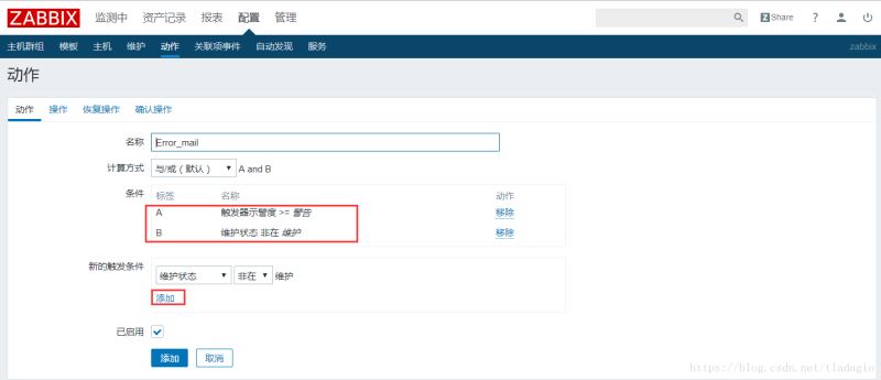 8、設(shè)置告警條件:配置-動(dòng)作-創(chuàng)建動(dòng)作
