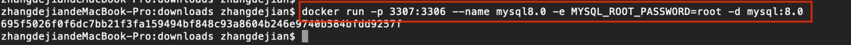docker run -p 3307:3306 --name mysql8.0 -e MYSQL_ROOT_PASSWORD=root -d mysql:8.0