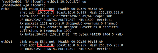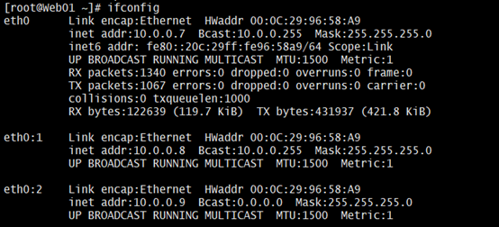 ip addr add 10.0.0.9/24 label eth0:2 dev eth0(使用ifconfig和ipaddr都能查看,推薦使用)