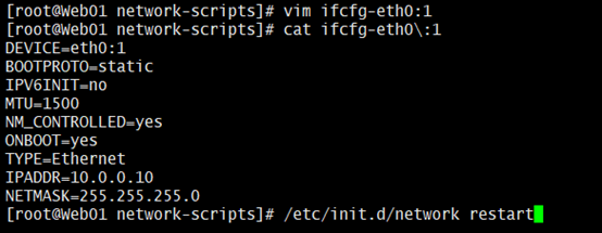 cp ifcfg-eth0 ifcfg-eth0:1 #拷貝配置文件并重命名