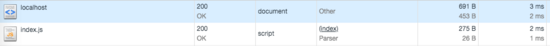 然后我們?yōu)g覽器訪問 localhost:8080。打開控制臺,發(fā)現(xiàn)里面有兩條請求: