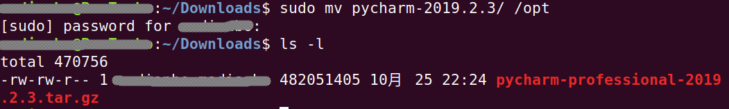 然后,cd /opt/pycharm-2019.2.3/bin/ 切換到bin目錄下,