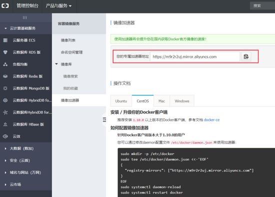 可以看到鏡像加速地址如下圖: