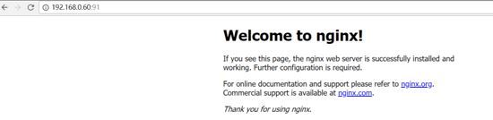 訪問http://Docker宿主機(jī) IP:91/,將會(huì)看到nginx的主界面如下: