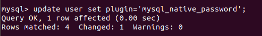 第六步:執(zhí)行一下語句:update user set plugin="mysql_native_password";