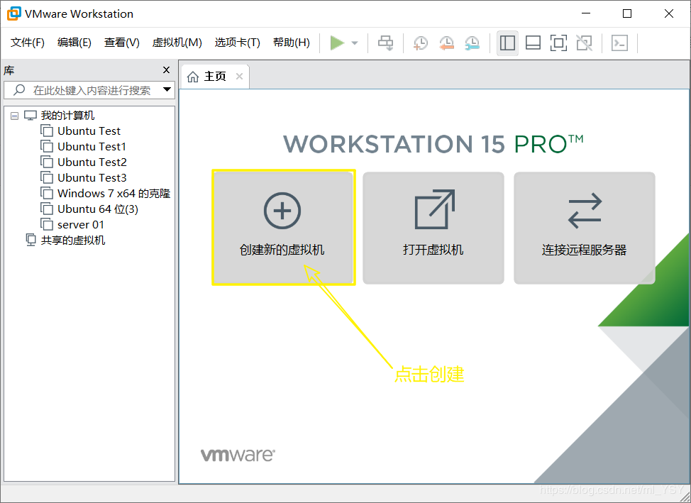 1、首先,在VMware Workstation Pro的主頁(yè)面點(diǎn)擊創(chuàng)建新的虛擬機(jī);