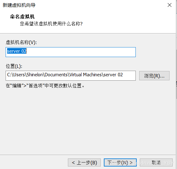 5、接下來(lái)的一個(gè)窗口將是給你的虛擬機(jī)命名和指定路徑,自己想放在哪里你自己決定,這個(gè)就不用我說(shuō)了吧,大家都知道。然后下一步;
