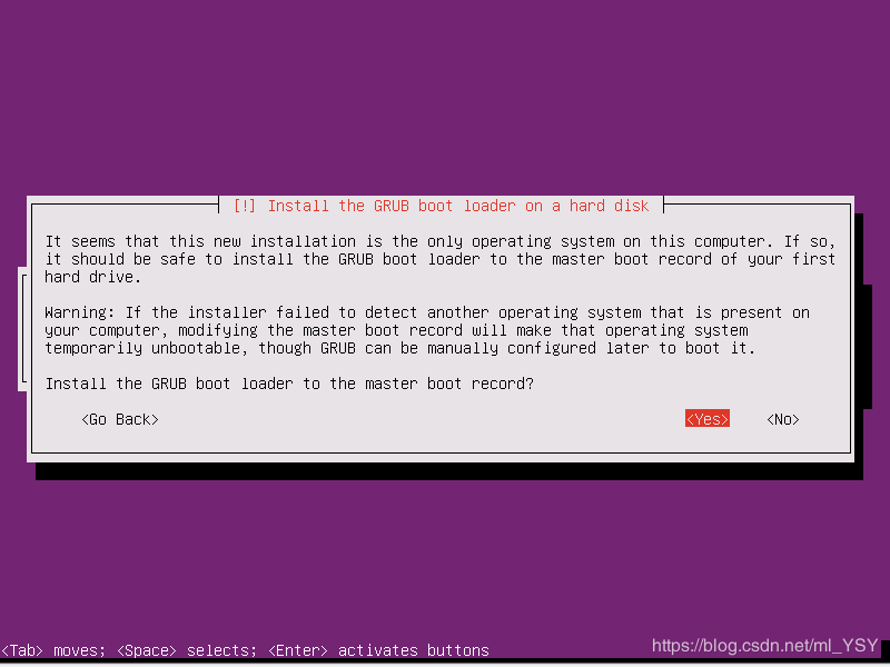 然后回車(chē),等待安裝進(jìn)行。然后你會(huì)看到下面的窗口,還是選yes,回車(chē)