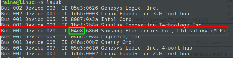下面所有的04e8改成自己的識(shí)別號(hào), android.rules文件名可自定義