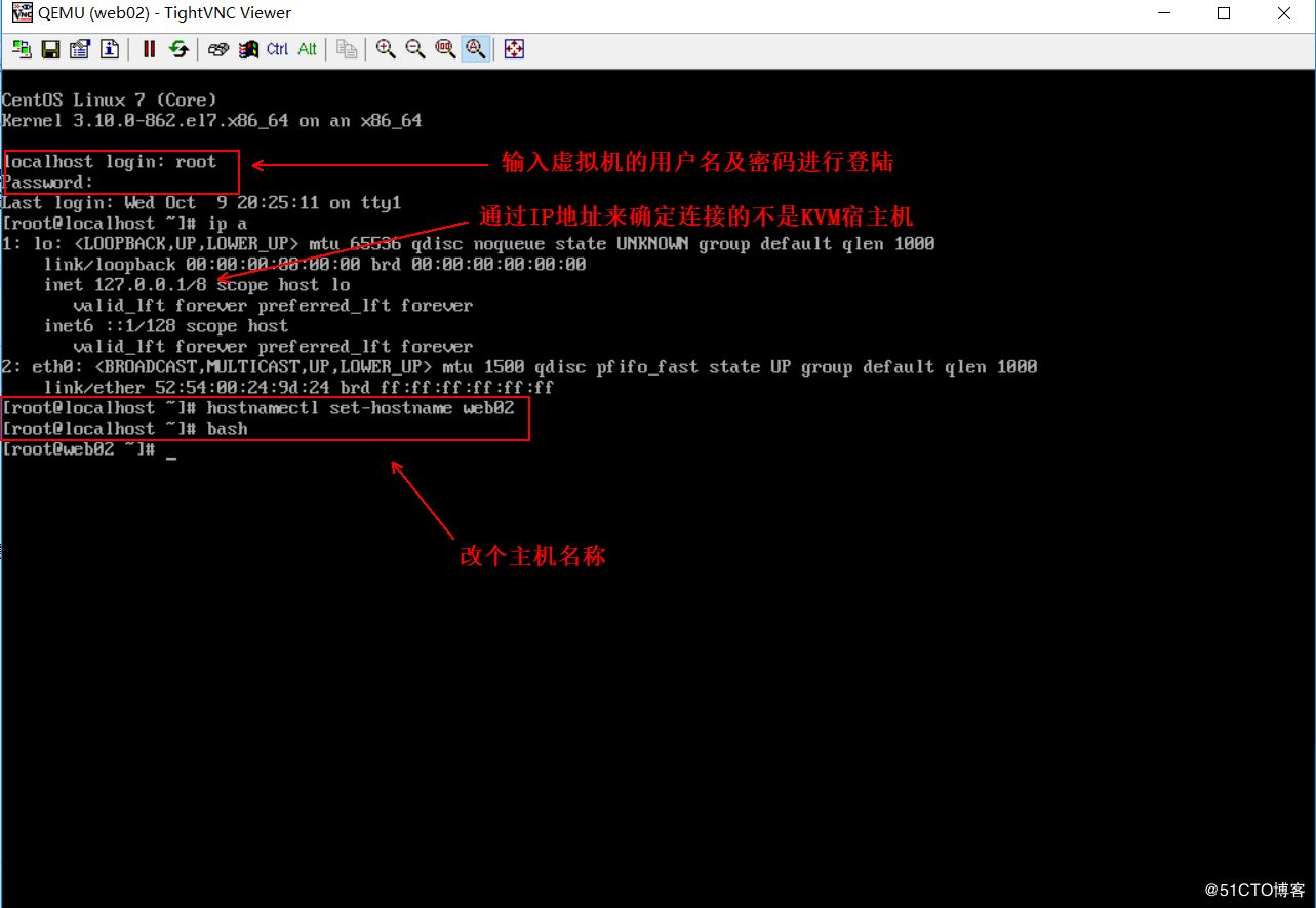 在KVM宿主機上執(zhí)行以下命令即可登陸成功(前提是在使用vnc登陸時已經(jīng)更改了web02的內核參數(shù))