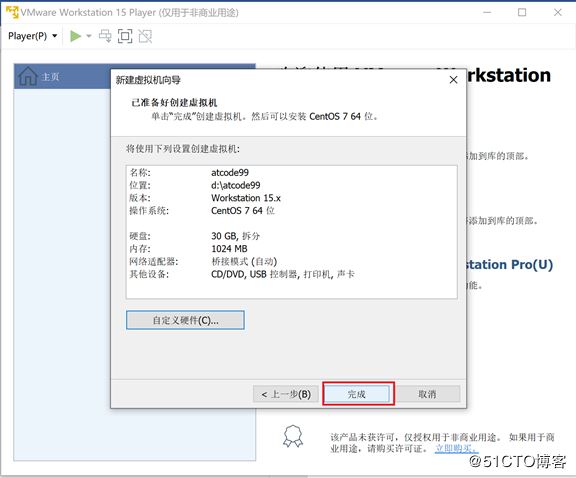 2.10(可選):其他幾個(gè)不是很重要,點(diǎn)擊完成,這樣虛擬機(jī)自定義硬件完畢