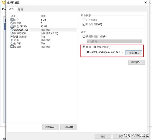 3.1:在虛擬機(jī)設(shè)置界面選擇ISO映像文件 CentOS-7-x86_64-DVD-1810.iso