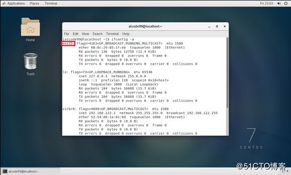[root@localhost atcode99]# vi /etc/sysconfig/network-scripts/ifcfg-ens33