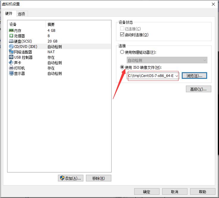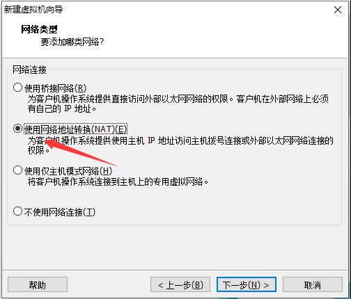 選擇網(wǎng)絡(luò)類型(常用NAT模式)