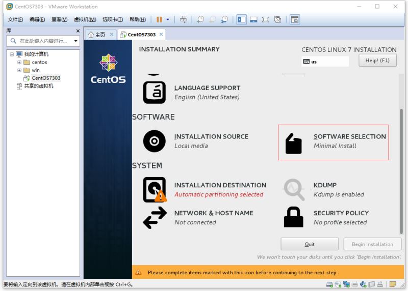 可以安裝形式按需可選,可以選擇Minimal Install最小化安裝