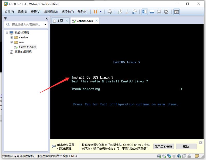 選擇“Install CentOS Linux 7”安裝選項(xiàng)