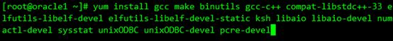 [root@ORACLE1 ~]# yum install gcc make binutils gcc-c++ compat-libstdc++-33 elfutils-libelf-devel elfutils-libelf-devel-static ksh libaio libaio-devel numactl-devel sysstat unixODBC unixODBC-devel pcre-devel