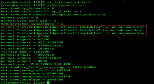 [root@ORACLE1 11G]# /sbin/sysctl -p