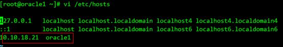 [root@oracle1 ~]# vi /etc/hosts //修改hosts文件