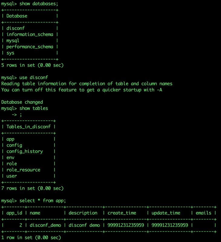 我們?nèi)?shù)據(jù)庫里看看數(shù)據(jù)是不是真的有了,執(zhí)行docker exec -it mysqldisconf /bin/bash進(jìn)入容器;