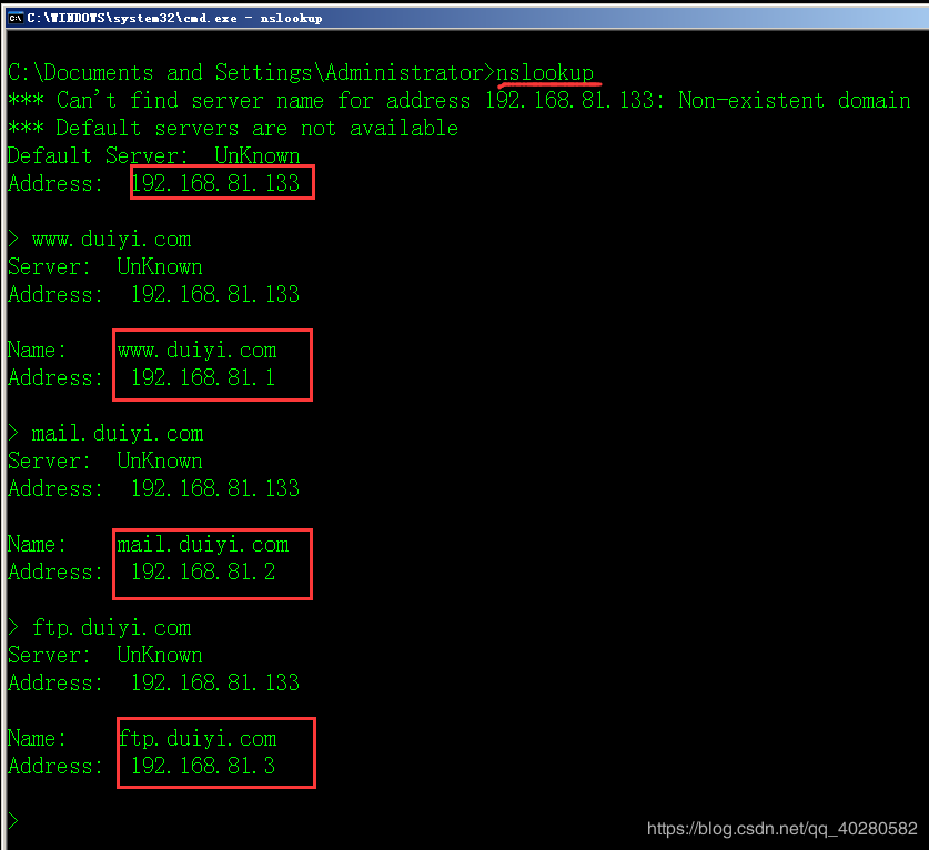 3. 正向解析測(cè)試,使用nslookup命令(與windows測(cè)試一致)