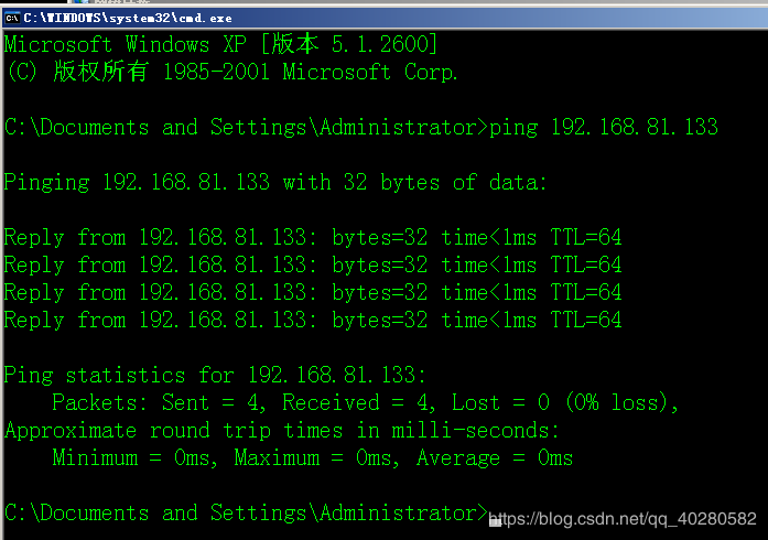 2.ping 服務(wù)端ip(192.168.81.133),測(cè)試能否訪問(wèn)服務(wù)器