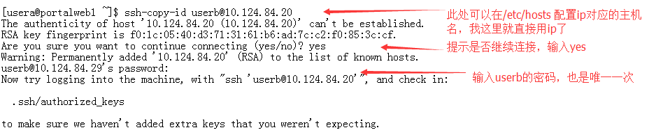 [usera@portalweb1 ~]$ ssh-copy-id userb@10.124.84.20