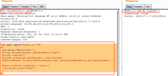 1、PUT上傳一個jsp的webshell到fileserver目錄,下圖可以看到成功上傳jsp文件