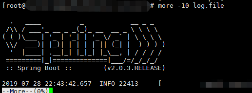 如果說(shuō)希望查看的日志文件過(guò)大,那么可以通過(guò)使用more命令來(lái)進(jìn)行分頁(yè)查找,例如說(shuō)設(shè)定每一頁(yè)展示10條數(shù)據(jù)信息: