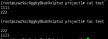 例如說(shuō),我們通過(guò)cat命令和tac命令同時(shí)來(lái)查看一段相同的內(nèi)容: