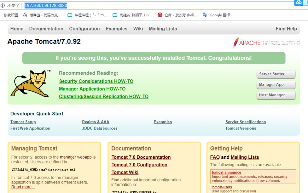瀏覽器訪問(wèn):http://192.168.159.128:8080/出現(xiàn)下面這個(gè)界面就是安裝成功。