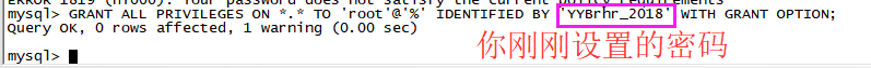 GRANT ALL PRIVILEGES ON *.* TO 'root'@'%' IDENTIFIED BY 'YYBrhr_2018' WITH GRANT OPTION;