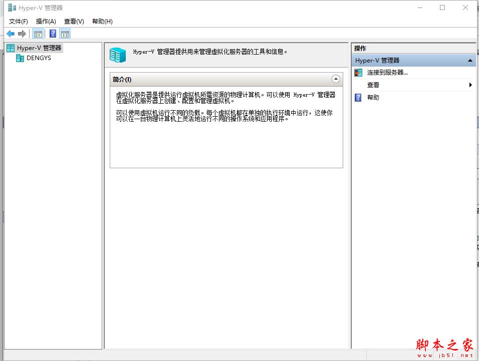 2、安裝完畢后,直接在左邊的開始菜單,查找點(diǎn)擊【Hyper-V 管理器】,即可進(jìn)入Hyper-V管理器界面,如下圖所示: