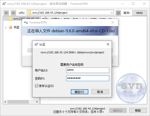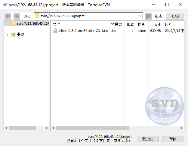 瀏覽版本庫,然后向版本庫中添加一個文件