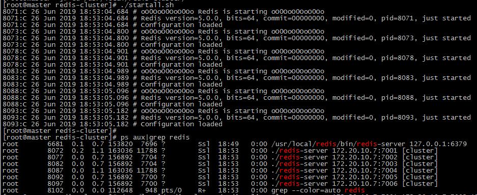 分別進入redis01、redis02、...redis06目錄,執(zhí)行: ./redis-server ./redis.conf