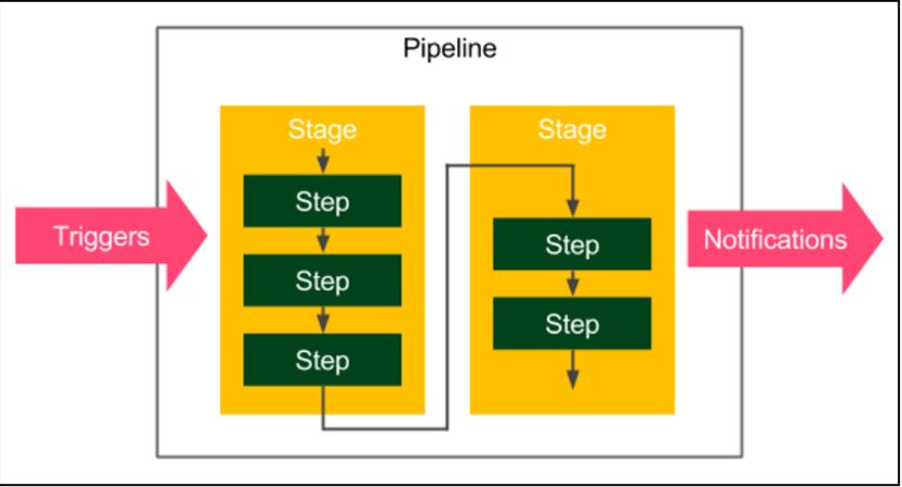 Jenkins管道由兩種元素組成:階段和步驟。下圖顯示了如何使用它們: