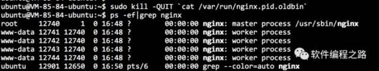 第二條命令是發(fā)送信號QUIT給舊的master進程,進程的pid存放在/var/run/nginx.pid.oldbin文件中,隨后舊的master進程退出。